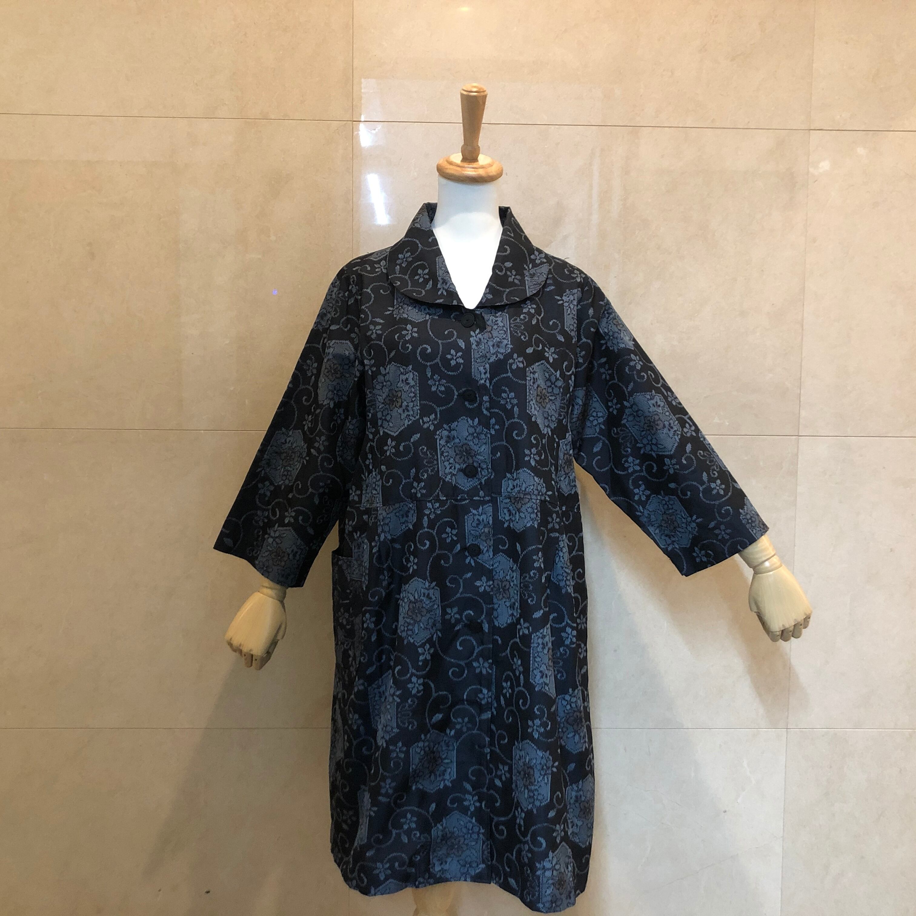 大島紬コートブルー花模様(M〜L L)